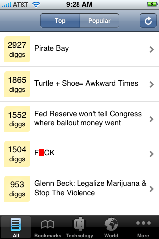 You thought the Tweetie rejection was stupid? Pete Gallaway’s Diggle is a Digg.com client for iPhone. It was rejected (the offense) because that day, a Digg article with the title “FUCK” was popular.