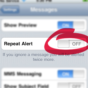 Thank you. Thank you so much. As I said a few months ago, the multi-ringing SMS alert was the worst new ‘feature’ ever added to the iPhone. I’m glad we’re finally getting the choice to fix it.